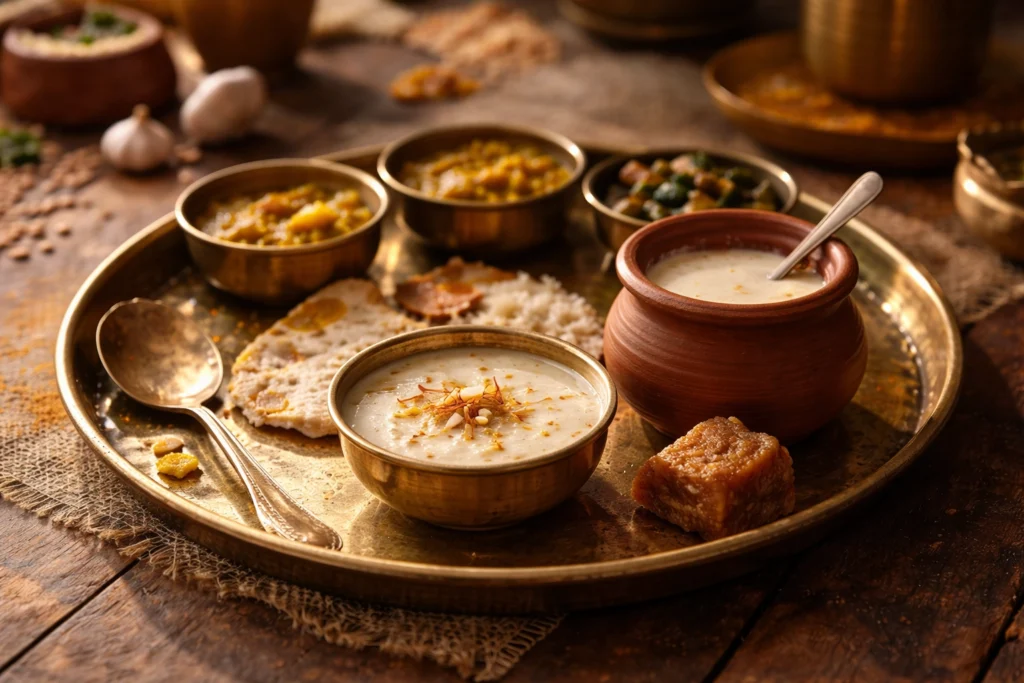आपने खाया। शायद ज़्यादा खा लिया। दाल बिल्कुल सही थी, सब्ज़ी लाजवाब थी, चावल था, रोटी थी और साथ में कुछ तीखा अचार। और फिर, जब आपको लगा कि अब सब खत्म हो गया है, तभी एक छोटा कटोरा सामने आ गया। थोड़ा सा खीर। गुड़ का एक टुकड़ा। या मिट्टी के बर्तन में रखा ठंडा-ठंडा मिष्ठी दोई। कुछ मीठा — हमेशा कुछ मीठा।