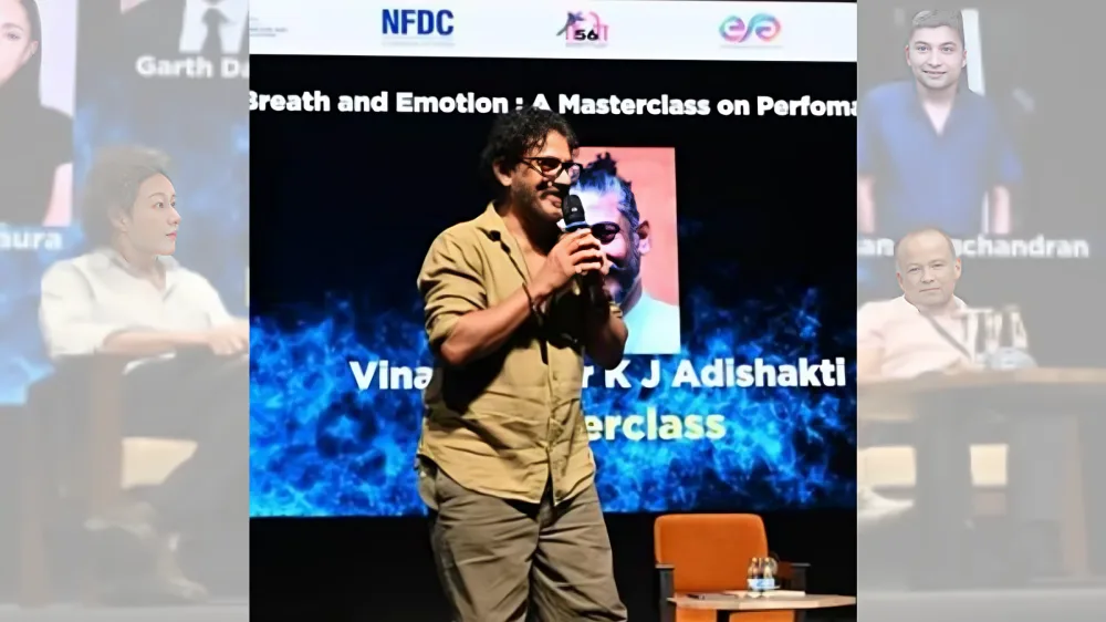 ‘Breath and Emotion: A Masterclass on Performances,’ conducted by Vinay Kumar K J of Adishakti, was a standout event at IFFI. As a protégé of Veenapani Chawla and the Artistic Director at Adishakti, Vinay infused his session with discipline, tradition, and insight. Shri Prabhat, Additional Secretary of the Ministry of Information and Broadcasting, recognized Vinay’s contributions prior to the session. Vinay engaged the audience directly, transforming the environment into a collaborative exploration. He encouraged the audience to reconsider their understanding of emotion, highlighting its evolution over time and across cultures.