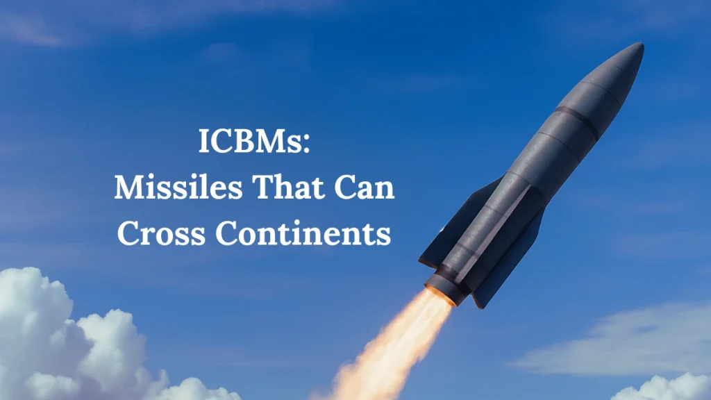 Think of an Intercontinental Ballistic Missile (ICBM) as a long-distance delivery system. Only instead of carrying a package, it carries a nuclear warhead. These missiles are built to fly across continents. Some can travel more than 16000 kilometres in a single launch.