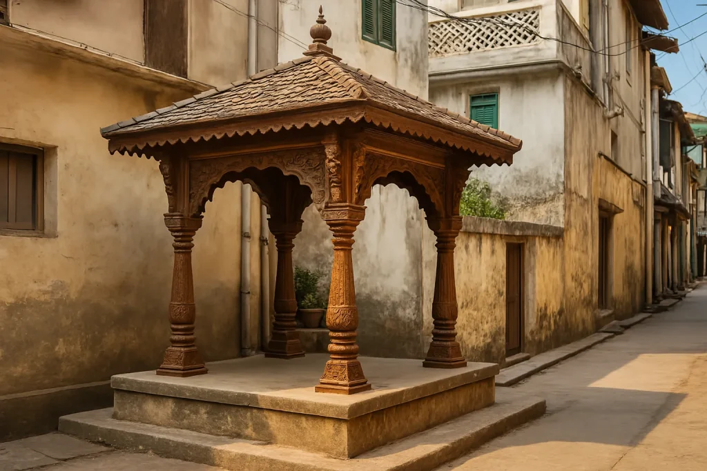 અહીં બિલાડીનો ડર હોવાથી સ્થાનિકોએ પીપળના ઝાડ પર રહેલી ખિસકોલીની અવરજવર માટે વાંસના લાકડાથી સુંદર સેતુ તૈયાર કર્યો છે. ઝાડ અને ચબૂતરાને જોડતા આ પુલથી ખિસકોલીની ચપળ આવનજાવન આંખો માટે મજાનું દૃશ્ય સર્જે છે.