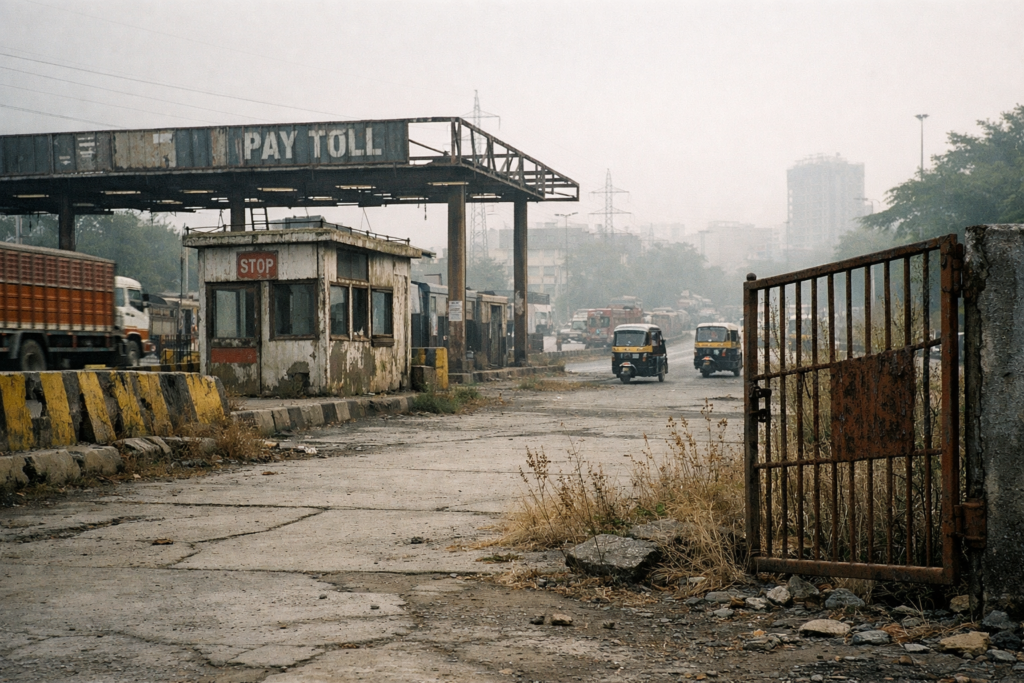Go to the Dahisar naka today and you will find what eight years of civic inertia looks like in physical form. The old octroi booths still stand, their paint long surrendered to the weather. The land around them is a flat, dusty expanse interrupted by parked vehicles and the occasional temporary structure. Weeds have taken whatever the concrete has not. It is a strange sight in a city where every inch is theoretically contested. Forty-three acres of Mumbai, sitting there, doing nothing.