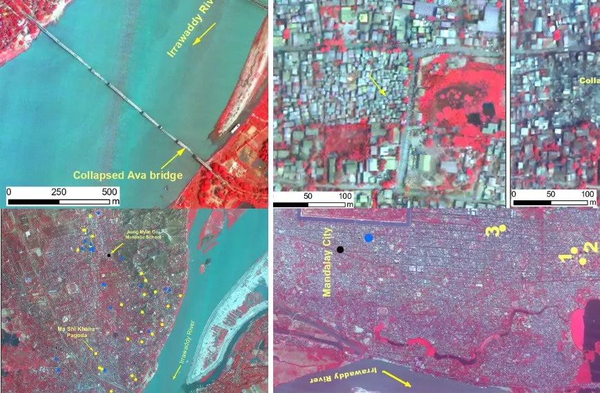 The Ava Bridge, an iconic structure over the Irrawaddy River, collapsed. The bridge connected Sagaing with Mandalay. Its destruction has disrupted transport in the region.