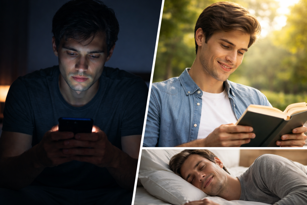 The blue light emitted by screens suppresses melatonin, the hormone that signals to your brain that it’s time to wind down. Using a phone in bed doesn’t just keep your mind active; it actively disrupts the biological process of falling asleep. Studies have shown that people who use screens in the hour before bed take longer to fall asleep, spend less time in restorative deep sleep, and wake up feeling less refreshed even if the total hours of sleep look the same on paper.