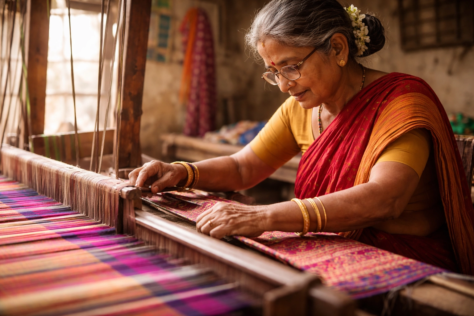 In a modest home that doubles as a workspace, the steady rhythm of a handloom fills the afternoon air. The weaver’s hands move with quiet precision, guided by patterns passed down through generations. For years, this skill struggled to compete with mass-produced textiles. Orders were irregular, incomes uncertain, and younger family members wondered whether the craft had a future at all.